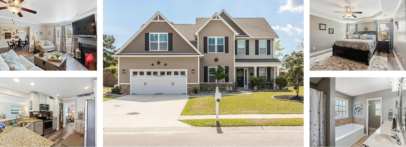 Beautifully maintained, updated home in The Pines section of popular Mallory Creek Plantation offers 5 spacious bedrooms, 3 full and 1 half baths across over 3000 square feet.