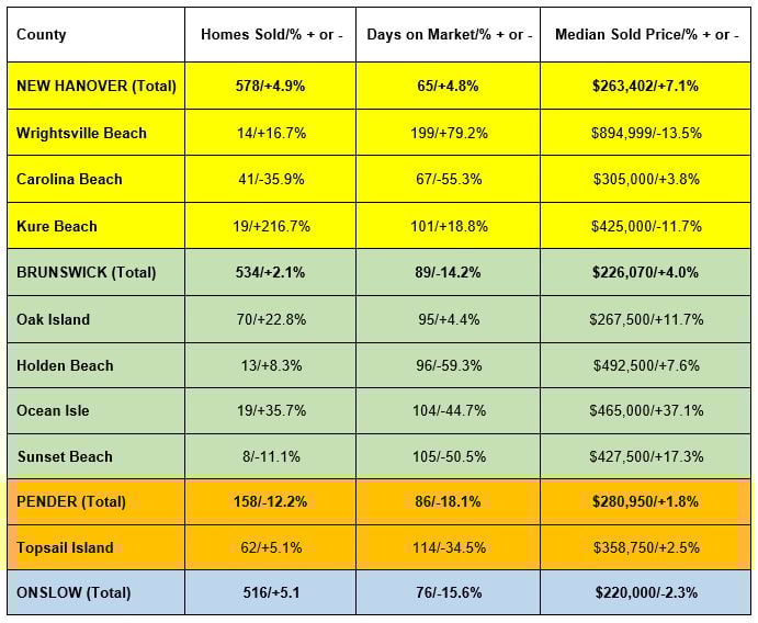 Onslow County was the most affordable in the region, with the median price of 516 homes sold in June at $220,000. Brunswick County followed with 534 homes sold in June with a median sales price of $226,070.